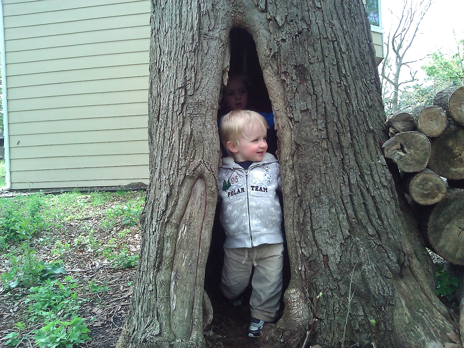 This big, giant, HOLLOW oak is a super fun place to investigate.